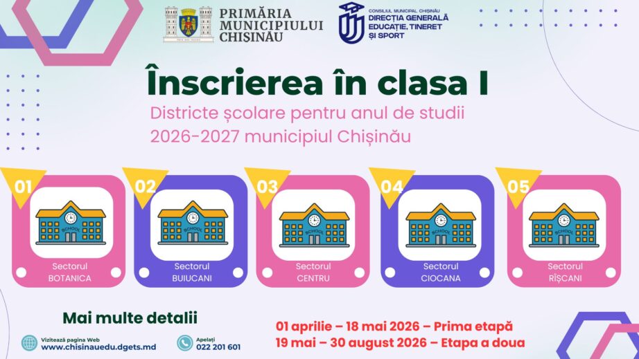 📚🎒 Direcția Generală Educație, Tineret și Sport a Primăriei municipiului Chișinău continuă Campania de informare privind înscrierea copiilor în clasa I pentru anul școlar 2026–2027.
